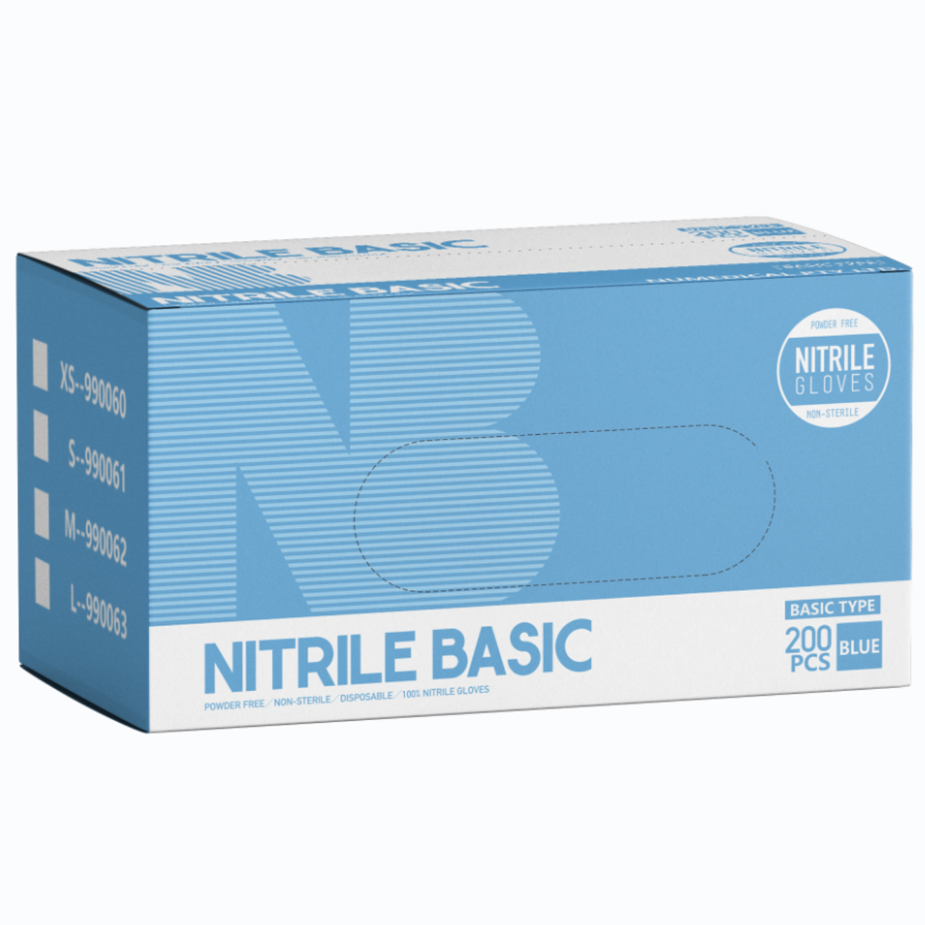 Basic Nitrile Examination Glove, Blue, 200pcs/box, BX Size(cm): 23.5L x 12W x 8H, 990060 - 990063