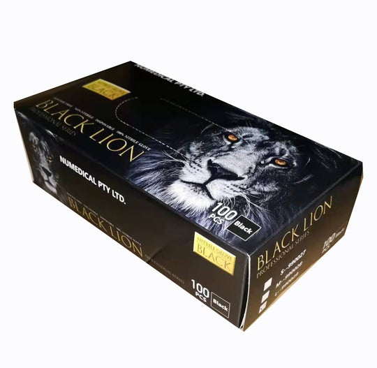 Black Lion Nitrile Examination Glove, 100pcs/box, BX Size(cm): 21.5L x 12.2W x 6.5H, 990027 - 990029