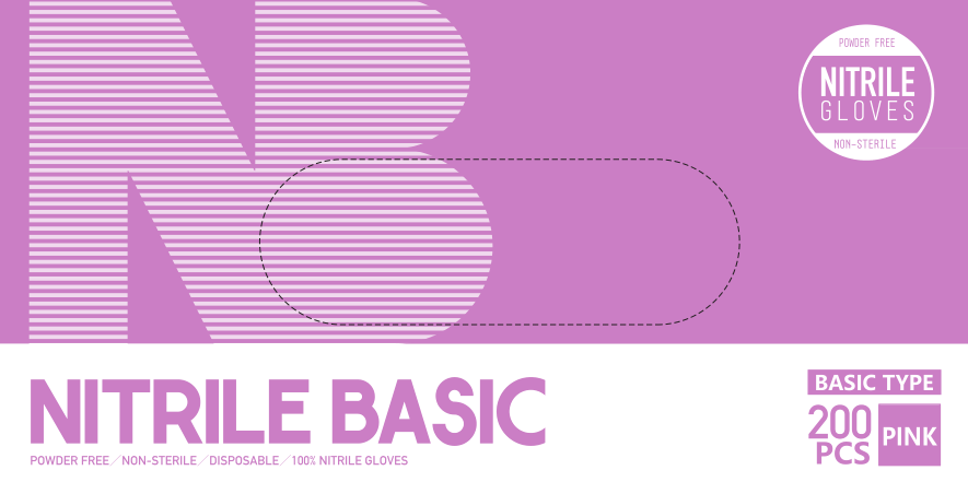 Basic Nitrile Examination Glove, Pink, 200pcs/box, BX Size(cm): 23.5L x 12W x 8H, 990052 - 990054