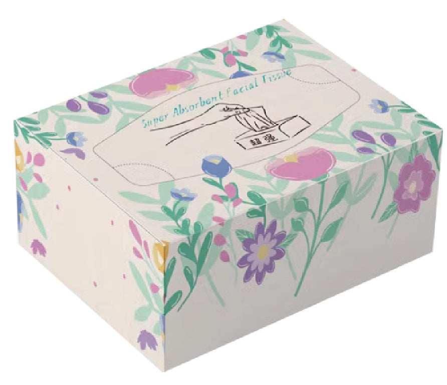 2-ply facial tissue with excellent tenacity and absorbency and leave no dust particles. Does not rip easily, even when wet. 200 pcs per box and 40 boxes per case. Size: 230mm(L) x 160mm(W).