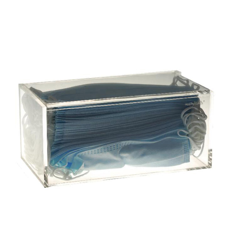 Ideal for storing face masks. Size: 210mm(L) x 110mm(W) x 130mm(H). Note: Mask not included. Cleaning instruction: Use only soap and water on acrylic surface. Alcohol or ammonia-based may cause cracks to appear.