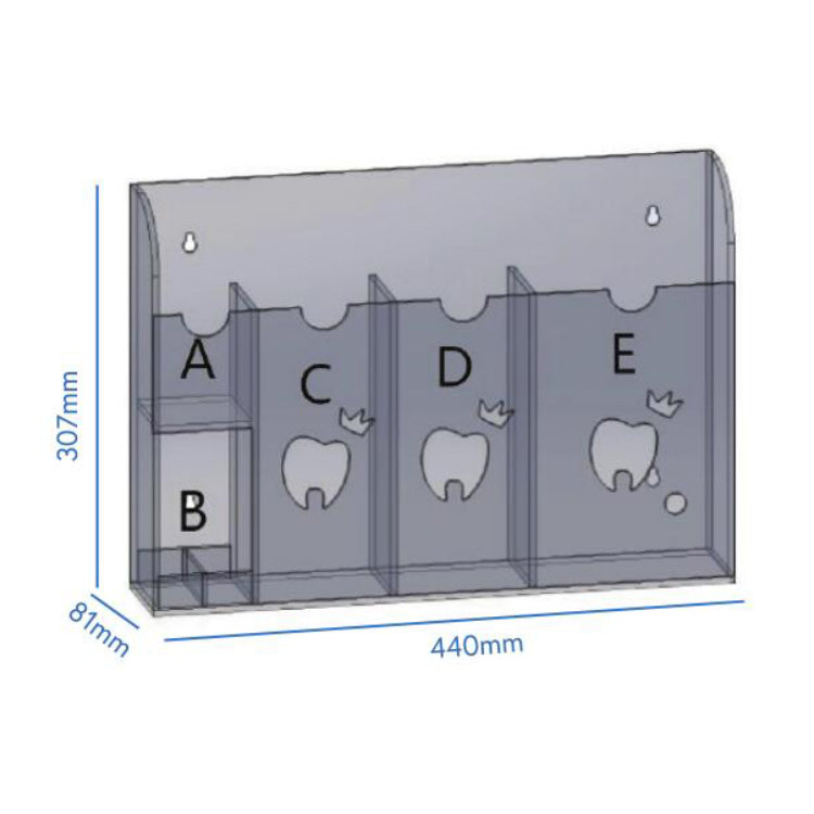 Ideal for storing sterilisation pouches of various sizes. Pre-drilled holes allow for easy wall-mounting.